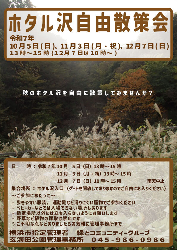 秋のホタル沢を自由に散策してみませんか?詳しくは添付チラシをご覧ください。